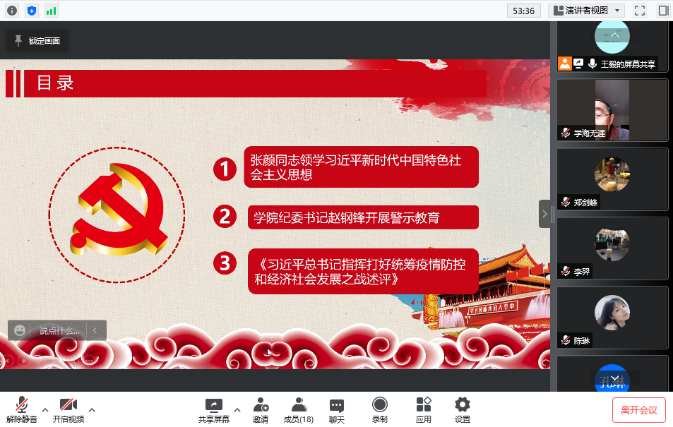 2022-04-202022年4月14日下午16:00,化学化工教工党支部线上开展了“携手同心,共守校园”主题党日活动及政治理论学习。会议由党支部书记王毅主持。...
