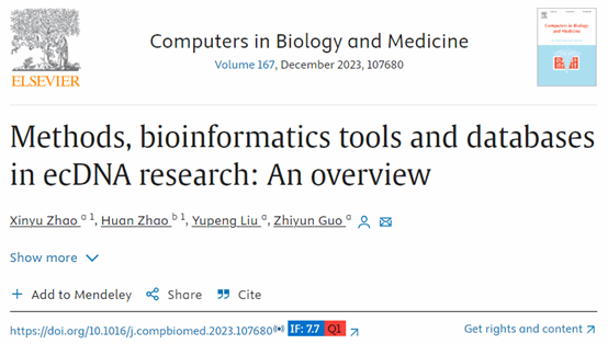 近日,郭志云课题组在国际权威生物信息学领域期刊Computers in Biology and Medicine在线发表了题为“Methods, bioinformatics tools and databases in ecDNA research: An overview”的文章(JCR一区,影响因子7.7分)。beat365官网郭志云老师为独立通讯作者,研究生赵欣宇为第一作者,beat365唯一官方网站为通讯作者单位。