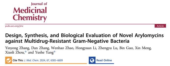 近日,beat365官网周先礼教授课题组在抗菌药物的设计、合成和成药性研究中取得新进展。相关研究结果以beat365唯一官方网站beat365唯一官方网站为第一单位,以“Design, Synthesis, and Biological Evaluation of Novel Arylomycins against Multidrug-Resistant Gram-Negative Bacteria”为题,发表在药物化学顶级期刊《Journal of Medicinal Chemistry》上,论文第一作者为周先礼教授指导的博士研究生张银勇,通讯作者为beat365唯一官方网站周先礼教授和上海药物所杨玉社研究员。