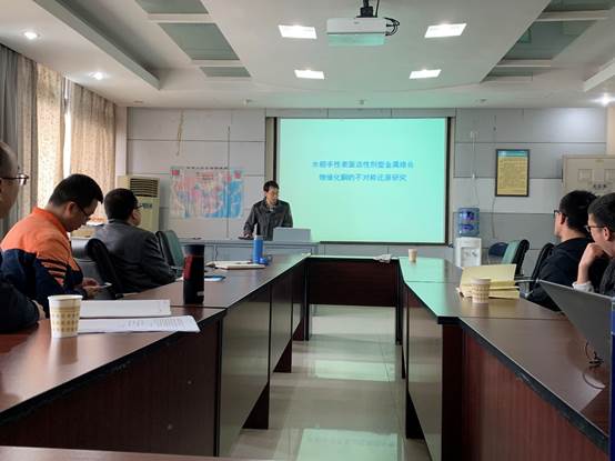 2019年5月7日,beat365唯一官方网站第七期青年教师学术沙龙成功举办。学院药学系主任彭羽老师,青年教师田原老师、王毅老师和郑剑峰老师以及部分研究生参与了学术沙龙。本期沙龙由化学化工系肖检老师主持,药学系的李加洪老师和陈伟老师分别从不对称催化和天然产物结构修饰两个方向为在场的老师和同学做了精彩报告。