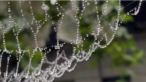 图1 蜘蛛丝网上布满水滴(来源于网络)