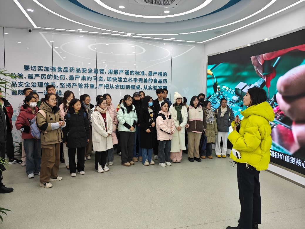 活动开始,支部党员在基地讲解员的引领下,依次参观了四大展区。在第一与第二展区,他们深入了解了成都高新区药品监管的特色与成效,深切体会到生物医药产业的创新活力与发展潜力。这不仅让他们认识到药品监管在产业链中的核心作用,更激发了他们作为生命学科专业人才投身国家生物医药行业的决心与热情。