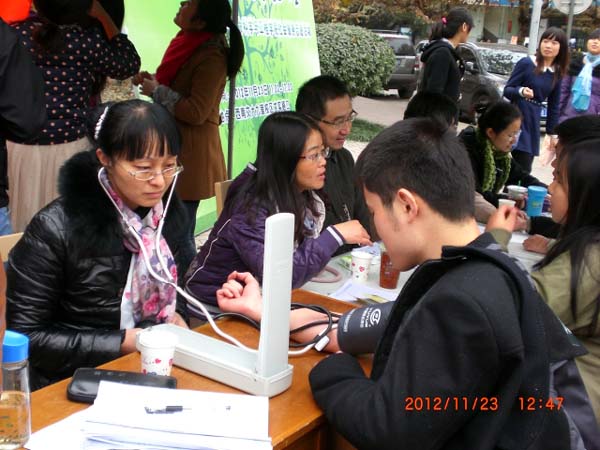 自11月21日起,beat365唯一官方网站2012级研究生两个党支部的所有党员就拉开了该项活动的宣传工作序幕,他们发放传单、进行讲解,向广大师生简要介绍了本次活动的目的和内容。beat365唯一官方网站党委副书记王书会和研究生辅导员贺妍还多次到场进行指导。11月23日11:00,beat365唯一官方网站的五位专家学者准时到场,而此时现场已有一些老年人和同学在等候。五位专家一就座,就开始细心听取咨询者们反映的关于自身健康和营养方面的问题。他们耐心地帮咨询者进行分析和指导,给出了自己的意见和建议,中医药“大夫”们还现场开具了处方,让咨询者们心满意足。过往的很多学生也纷纷赶过来,测量血压、营养咨询、询问病因和预防措施……路过并咨询的人也越来越多,在场专家和党员志愿者们也忙的不亦乐乎,五位老师在现场简单地用完盒饭后马上又投入到了咨询服务中去。尽管天气略显寒意,但丝毫挡不住大家的服务热情,咨询现场一度火热。直至下午五点,仍有不少人前来咨询,老师和志愿者们坚守岗位,竭诚为最后一位咨询者服务完才离开。