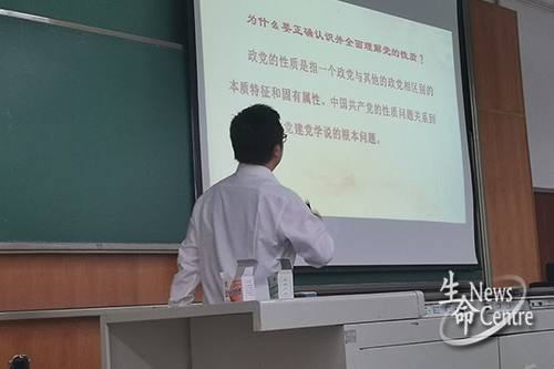培训开始之后,孔琳老师向同学们介绍了甘霖老师以及本次培训目的,随后由甘霖老师开启了本次培训的主题——中国共产党的性质和宗旨。甘霖老师首先通过对现场同学提出几个问题,从三个方面进行了本次培训:党的名称、党的性质、党的宗旨。