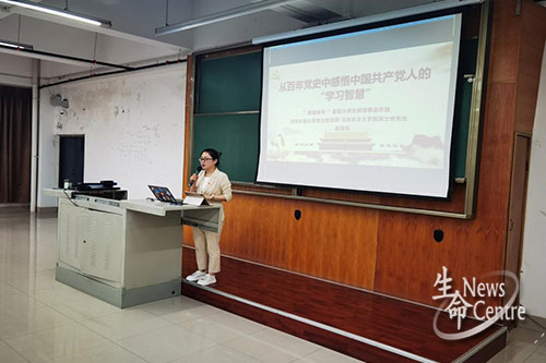 6月3日16:00,beat365唯一官方网站党史学习教育(一)在X4350顺利开展。本次培训请来了beat365唯一官方网站博士宣讲团、马克思主义学院博士研究生胡海利学姐为大家做了主题为“从百年党史中感悟中国共产党人的学习智慧”的讲座,参会人员有2020级全体同学,2019级、2018级班长、团支书以及入党积极分子,beat365唯一官方网站团委书记高鹏老师也出席了此次讲座。