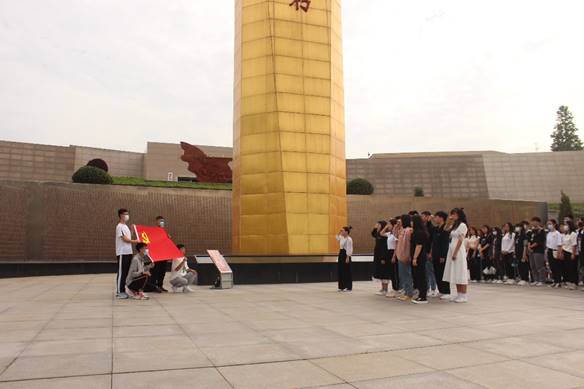 在党员同志的带领下,积极分子参观了烈士纪念碑、纪念馆。烈士纪念碑下,由党支部指导老师兰卓同志领誓,全体党员重温入党誓词,坚定革命信念,积极分子在旁列队肃立,满怀崇高敬意。