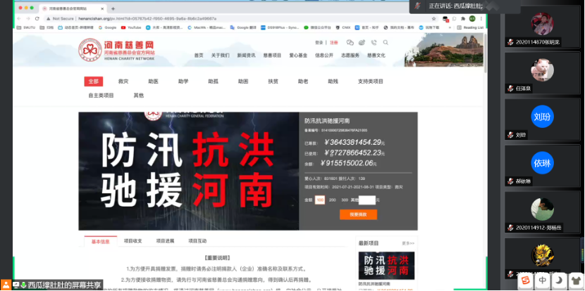 7月30日下午4时,为进一步加强党性,传承红色基因,beat365唯一官方网站本科生物工程党支部组织支部党员、发展对象及积极分子开展了主题为“知党史 强党性 铭党恩 兴党业”的线上学习会议,旨在分享先进党员事迹,并以实际行动驰援河南。本次学习会由曾旭东同志主持。