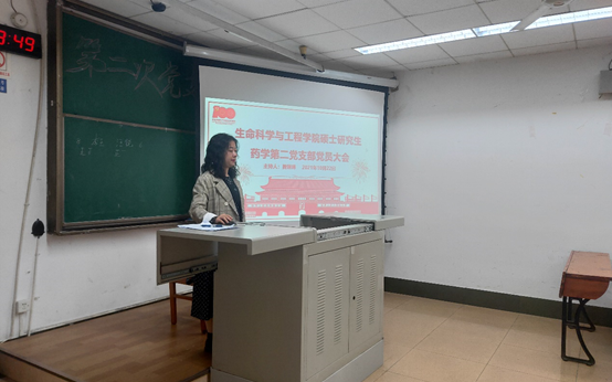 2021年10月22日19:00,为推进党史学习教育持续走深走实,学院硕士研究生药学第二党支部在J4304B教室开展“学党史、知党情、做合格党员”主题党日活动。本次会议由支部书记曾琳琳同志主持,支部全体党员同志、发展对象及入党积极分子参加。