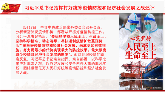 本次主题党日活动主要内容为共同学习《习近平总书记指挥打好统筹疫情防控和经济社会发展之战述评》。党员同志们重点学习了学习习近平总书记指出的“要始终坚持人民至上、生命至上,坚持科学精准、动态清零,尽快遏制疫情扩散蔓延势头”、“统筹好疫情防控和经济社会发展,采取更加有效措施,努力用最小的代价实现最大的防控效果,最大限度减少疫情对经济社会发展的影响”。通过学习,党员同志们更加坚定抗疫决心。最后通过学校防疫中的个别反面事例,警醒党员同志们严格遵守学校和当地的防疫政策,非必要,不出校。