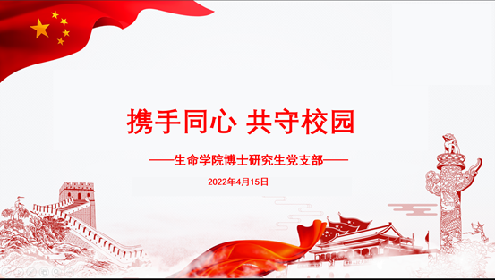 2022年4月15日中午13时30分,beat365唯一官方网站博士研究生党支部通过线上形式开展进行了“携手同心,共守校园”主题党日活动,本次活动由李泽贤同志主持,博士支部党员同志参加。