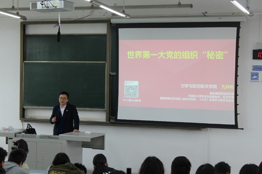孔祥彬副书记以“世界第一大执政党的组织‘秘密’”为题,为大家讲述了中国共产党组织的各项规定以及成为一名合格的党员所需要具备的品质。中国共产党代表了民主,民主建设是基础,没有民主做基础,就不可能形成正确的集中,更无法充分调动广大人民群众的积极性和创造性,推动党的事业朝气蓬勃地健康向前发展。党的六大基本原则和六大纪律以及党员的“三大优良作风”“八项规定”无不告诫我们成为一名党员要全心全意为人民服务,不能违背初心。同学们受益匪浅,将党员的要求铭记在心中,拥护党的领导,为早日能够成为党员更加积极奋发。