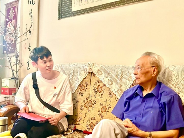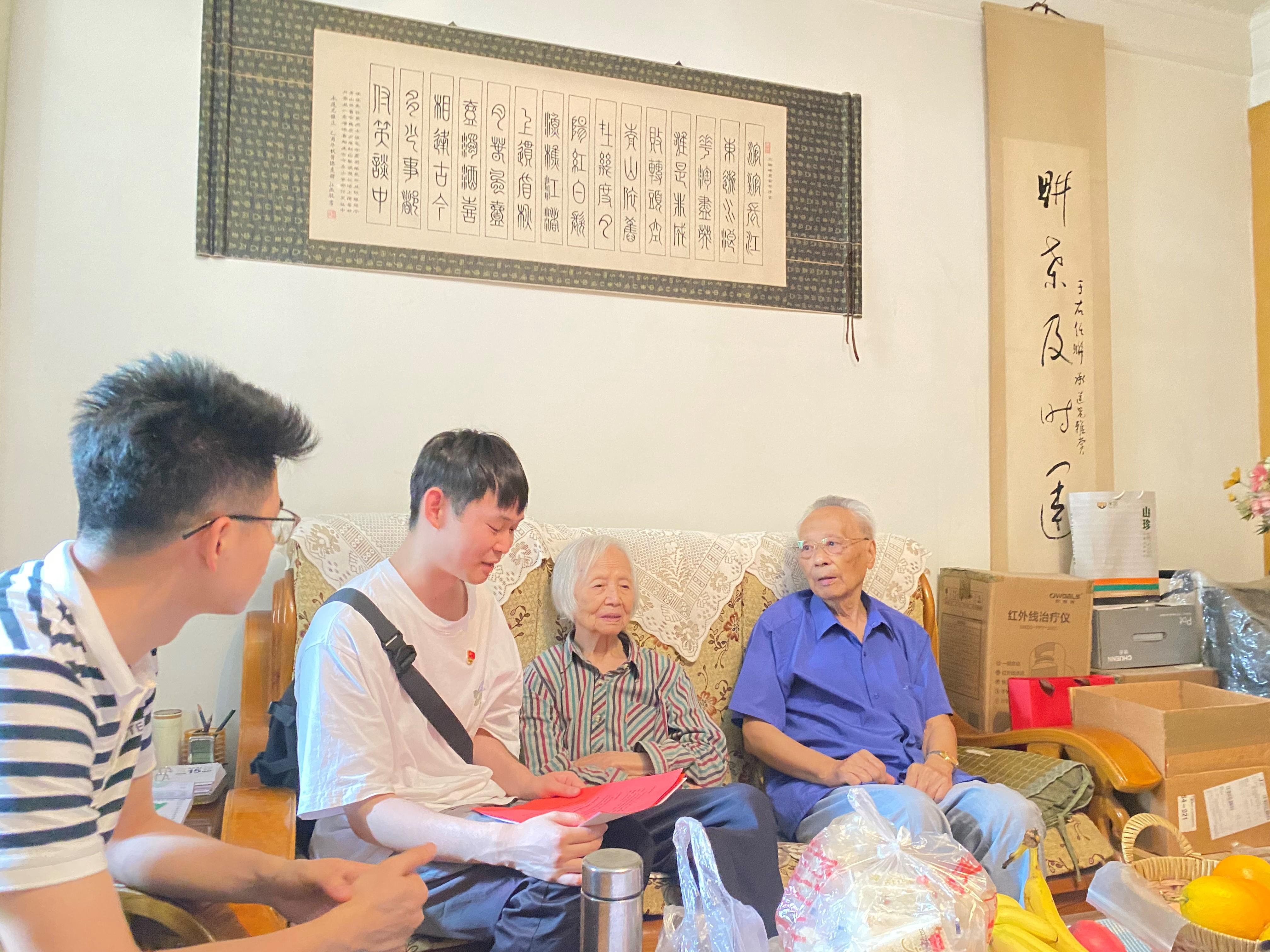 为迎接学校第十五次党代会的胜利召开,2022年6月17日下午,beat365唯一官方网站硕士研究生化学与生物学党支部联合硕士研究生生物与医药党支部开展了读懂中国,致敬“五老”活动,由黄斌翰、左锐、杨书翰、何奕佳四位党员同志作为党员代表,前往beat365官网退休教师张承道家中慰问采访。