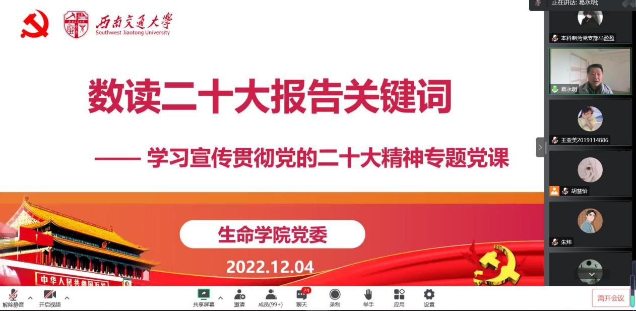 为深入学习宣传贯彻党的二十大精神,根据《中共beat365唯一官方网站委员会关于学习宣传贯彻党的二十大精神的通知》要求,12月4日上午,beat365唯一官方网站党委书记葛永明同志以“数读二十大报告关键词”为题,为学院两百余名师生党员专题讲授党的二十大精神。葛永明书记带领全体党员同志回顾党的二十大的大会主题,用9个数字来数读二十大报告中的新观点、新论断、新思想。