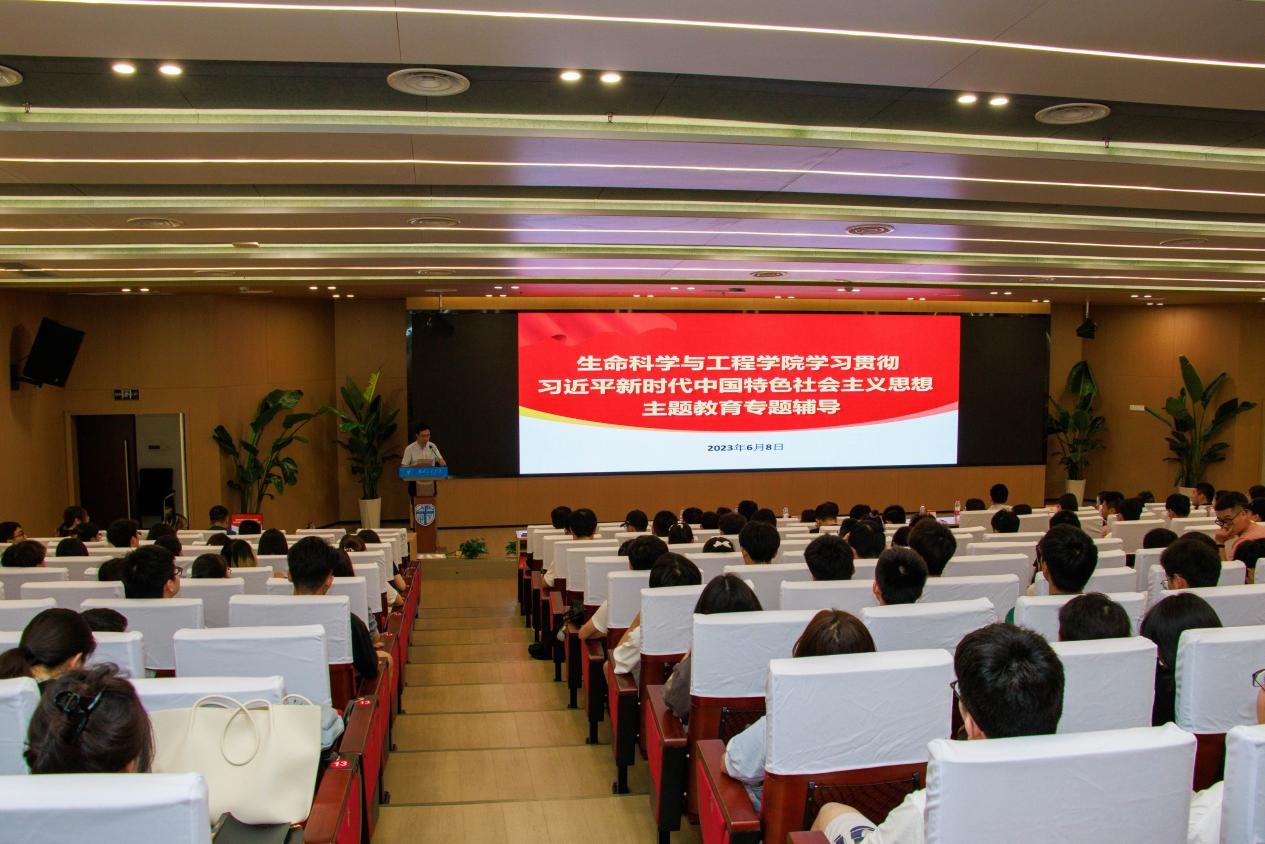为深刻领会党的二十大精神,牢牢把握学习贯彻习近平新时代中国特色社会主义思想主题教育“学思想、强党性、重实践、建新功”的总要求,推动主题教育走深走实,按照学校、学院学习贯彻习近平新时代中国特色社会主义思想主题教育学习安排,在前期学院组织全体党员自主学习、集体学习和实地研学的基础上,6月8日下午,beat365唯一官方网站在犀浦校区图书馆一号报告厅举办学习贯彻习近平新时代中国特色社会主义思想主题教育专题学习,特邀学校青年讲师团成员、马克思主义学院马先睿副教授作专题辅导报告。学校主题教育监督指导组成员李煜宏老师、学院党政班子成员及300余名师生党员、入党积极分子参与本次专题辅导报告。