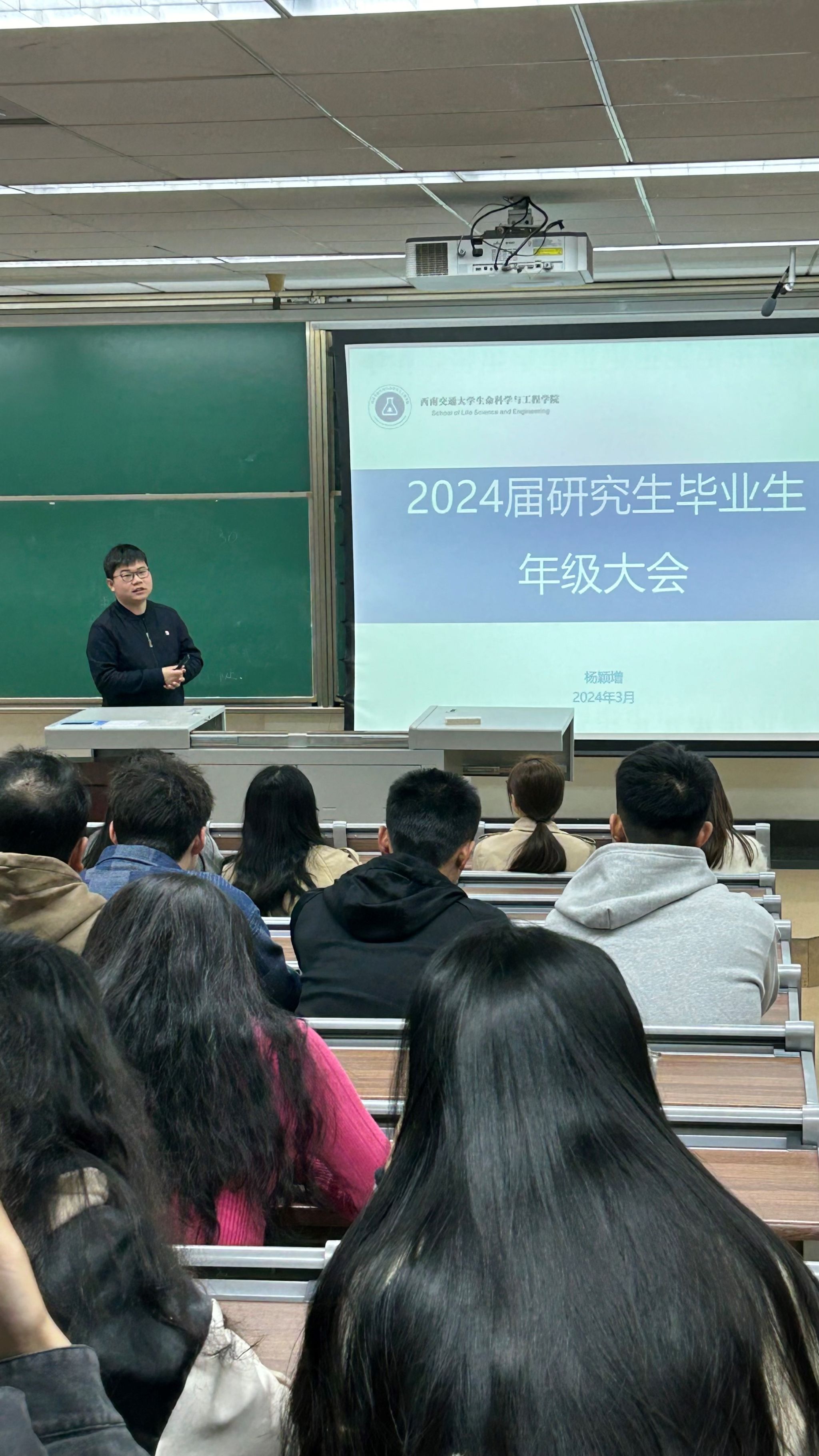 2024年3月24日下午,学院在J4323教室召开2024届研究生毕业生年级大会暨“就业大讲堂”。会议由学院青年讲师团成员杨颖增主持,学院院长助理、学生支持办公室主任华晶晶、全体研究生辅导员参会。
