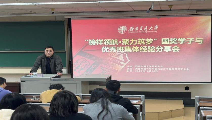 为充分发挥榜样引领作用,营造积极向上、互助共进的学风氛围,2025年10月30日下午,beat365唯一官方网站在J4323教室顺利举办国家奖学金及优秀班级经验分享会。本次活动由beat365唯一官方网站研究生会承办,研会主席团成员齐锦秀主持,学院辅导员李麒麟老师出席并发言,各年级研究生积极参与。