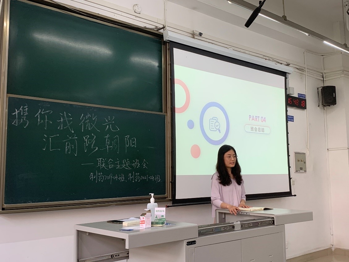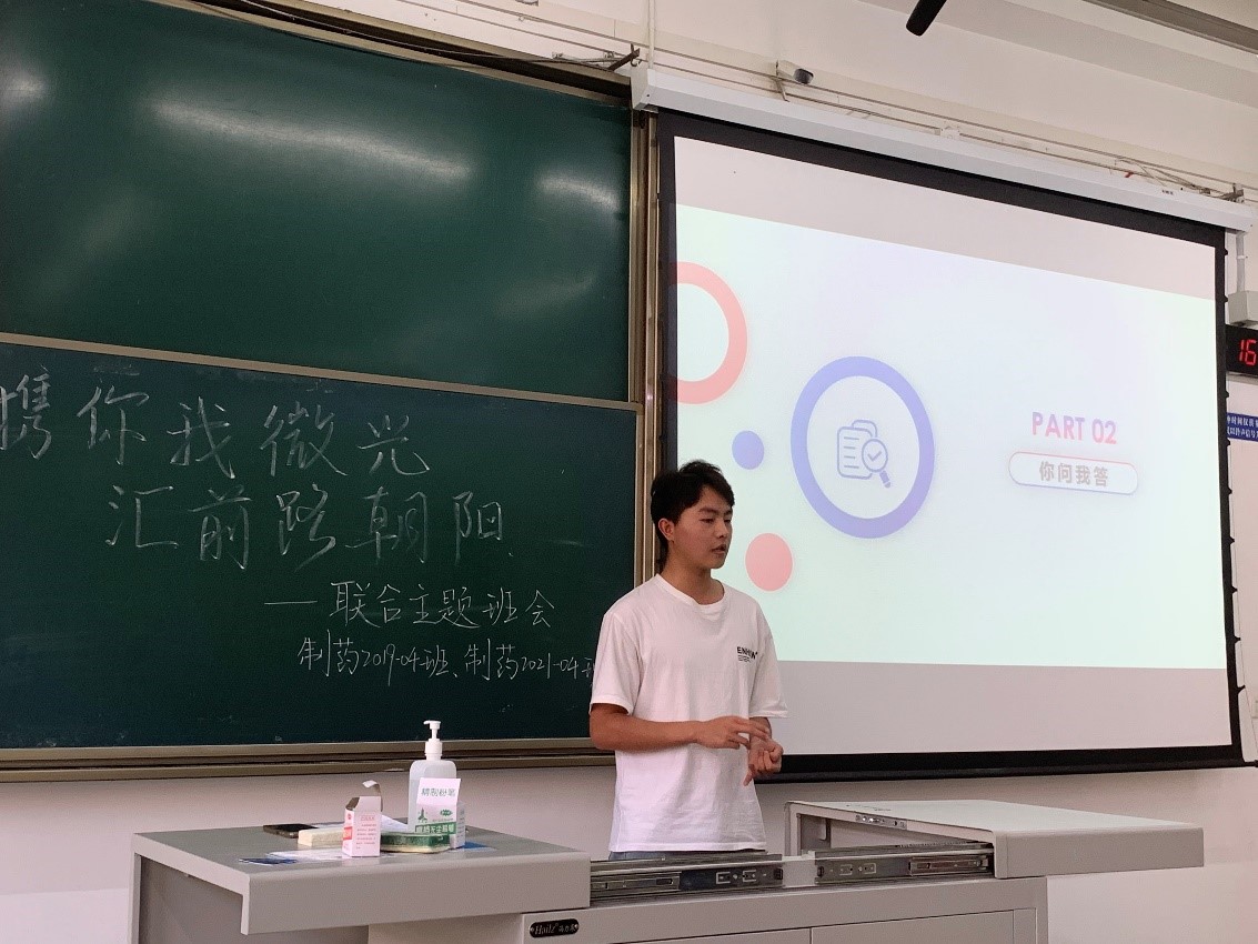 2022年5月5日15:50,beat365唯一官方网站制药工程2019-04班、制药工程2021-04班于犀浦校区X2220联合举办“携你我微光,汇前路朝阳”主题班会。制药2019-04班及制药2021-04班共44人到场参加,会议由游仕煜同学、徐志鹏同学主持。