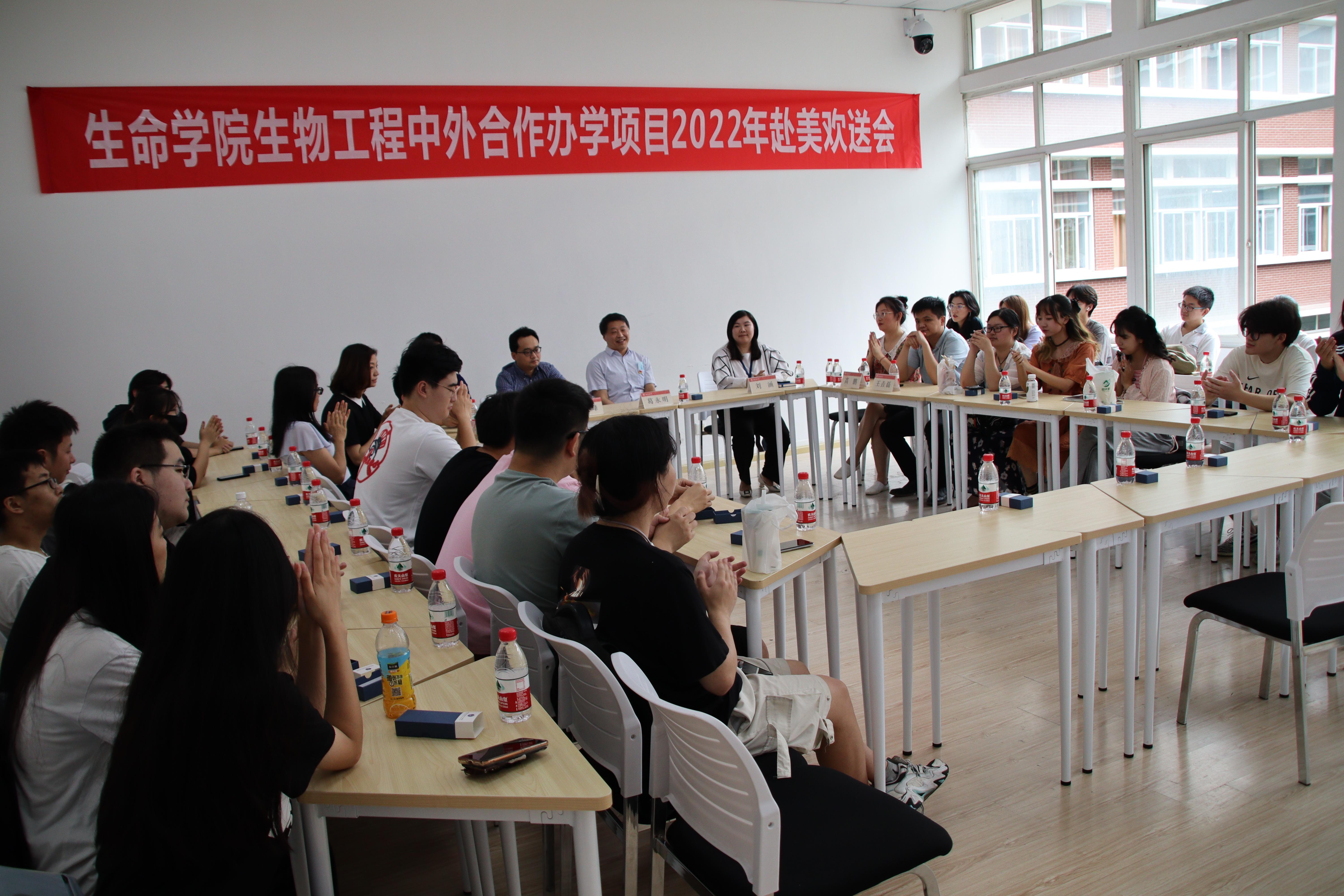 时光荏苒,岁月如梭,6月13日下午,beat365唯一官方网站为2022年中美班赴美同学召开欢送会。beat365唯一官方网站党委书记葛永明,beat365唯一官方网站副院长高峰,国际处刘涵老师,以及黄新河老师,刘新荣老师,王垚磊老师,高鹏老师,冯柳老师出席本次欢送会。