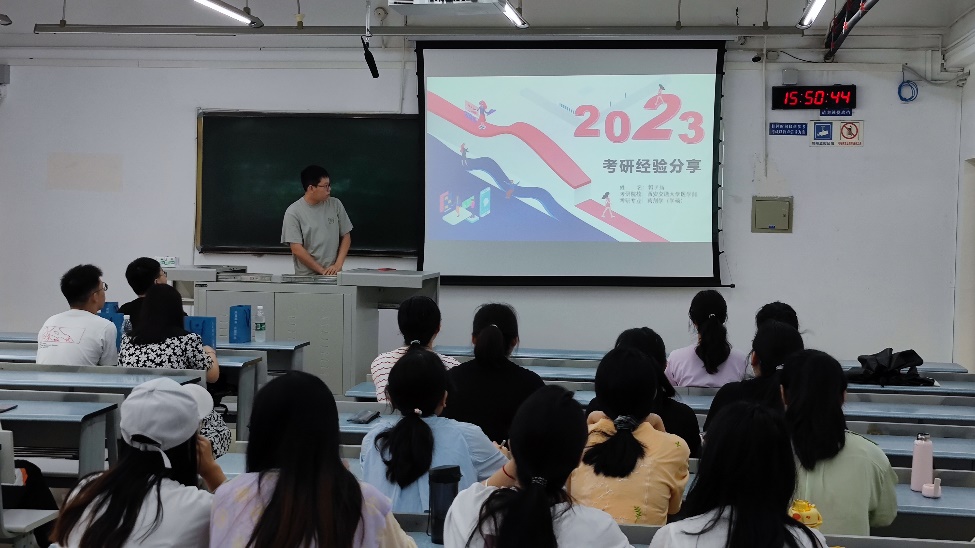 接着,李才华学长从包括政治、英语和专业课三个方面在内的考研课程入手,向大家分享其考研经验。期间李才华学长向大家推荐了一些参考书目,并从复习内容以及时间规划进行了仔细地讲解。