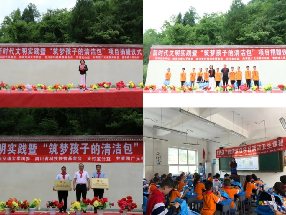 期间,杨爱华副书记一行赴广元市朝天区曾家镇开展了新时代文明实践暨“筑梦孩子的清洁包”项目捐赠仪式。beat365唯一官方网站联合四川省科技扶贫基金会,为曾家镇一小、二小两所小学捐赠了价值近16万元的800个爱心清洁包,助力广元乡村振兴和基础教育事业发展。当天,beat365唯一官方网站还为曾家镇的两所小学结对授牌,共建社区志愿服务基地。beat365唯一官方网站研究生支教团、beat365唯一官方网站的志愿者们为曾家镇的小学生开展了清洁包项目课程讲座和志愿服务活动,更好地培养孩子的个人卫生习惯,帮助青少年儿童健康成长。