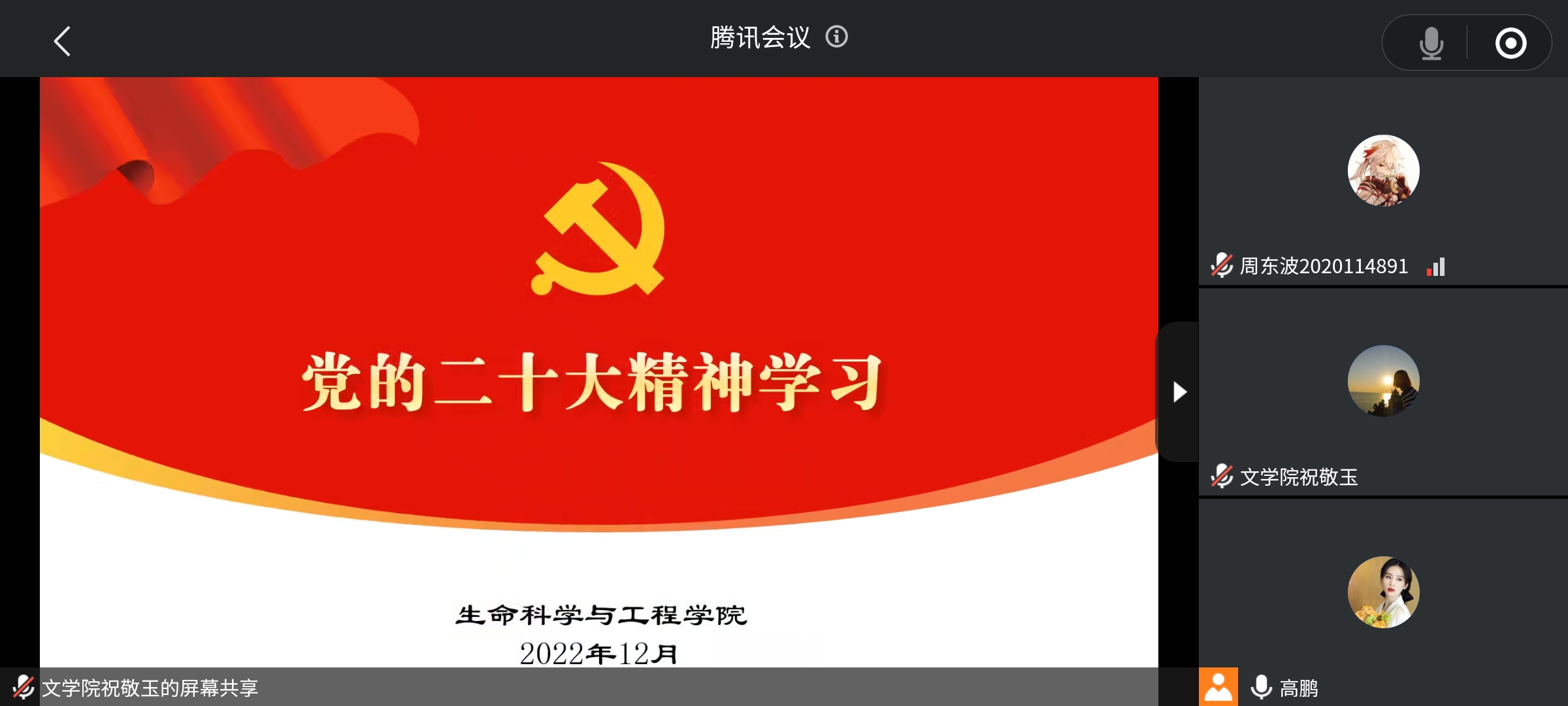 12月13日下午,beat365唯一官方网站开展学院团委书记领学党的二十大精神学习教育活动,会议由学院团委书记高鹏老师主讲,本科2020级辅导员祝敬玉老师以及100余名青年团员参与会议。
