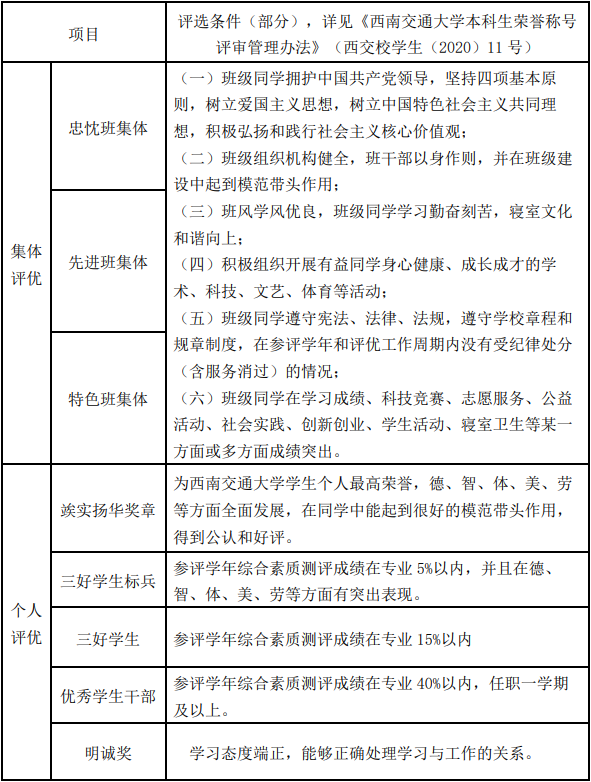 3.2021-2022学年本科生荣誉称号评选工作,暂不执行本科生综合素质评价体育、美育、劳动教育评价达标性要求。