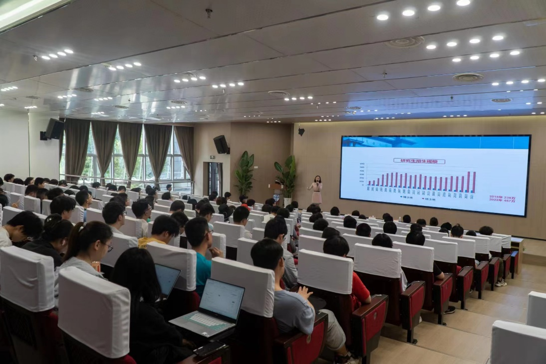 针对当前大学生的职业生涯规划困惑,特别是毕业生的考研和就业问题,4月14日下午,beat365唯一官方网站邀请国家职业生涯规划师、四川省第七届高校辅导员年度人物马琼副教授做客第二期《学思讲坛》,以“一研为定OR一定为研”为题,从为什么要考研、考研的全过程、如何安排自己的考研进程、如何确定是考研还是就业等方面,为2019级、2020级300余名本科生上了一堂生动的职业生涯规划课。