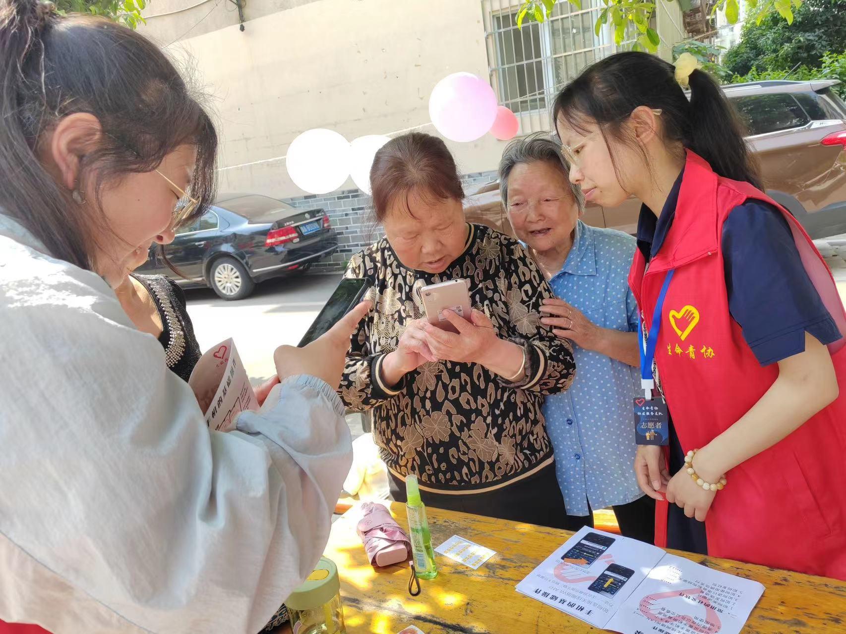 义诊当天,来自我校生命青协的志愿者们走进芙蓉小区,充分发挥学院特色,运用自己的专业知识,为社区内老年居民提供了健康指导:测量血压、体重体温等常规医疗服务,宣传食品安全和体育锻炼的重要性。同时,志愿者们延续了以往社区义诊中“过期药品兑换礼品”的活动,回收过期药品并将其送到专门地点集中处理。为体现青年志愿者的创新精神,帮助老人更好地融入数字时代,今年的社区义诊活动加入了指导老年居民使用智能手机的活动,志愿者们运用讲义和实际操作的形式,向老人们展示了手机的基础操作以及常用社交软件的使用方法,为解决数字信息时代“被遗忘的银发族”这一社会难题做出贡献。活动中,志愿者们设置了多样的小游戏和实用的礼品,鼓励老人们积极参与活动,增强了活动的趣味性。困难朝内,留给自己,服务向外,温暖他人,整个活动中,志愿者们身体力行,将健康生活,智慧生活的理念根植于居民内心。