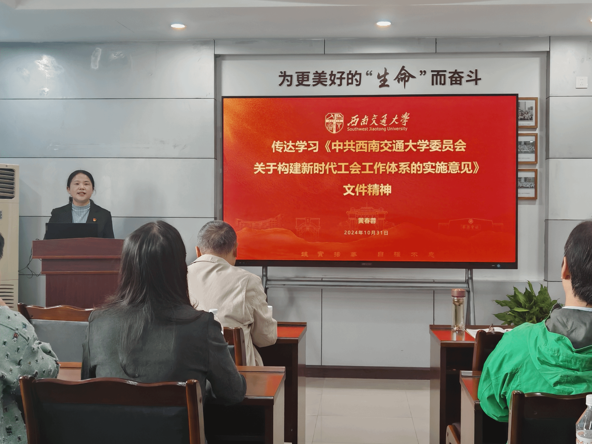 随后,学院党委书记黄春蓉带领全体参会人员传达学习了《中共beat365唯一官方网站委员会关于构建新时代工会工作体系的实施意见》文件精神。