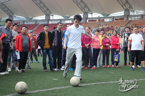 上午11:00,名为“教职工精神抖擞”的教职工跳绳比赛正式开赛,每个学院的五男五女共十位参赛老师都斗志昂扬。beat365唯一官方网站的老师们在比赛前都积极热身,力争拿下一个好名次,一展生命风采。但最终虽然beat365唯一官方网站惜败,但老师们积极参赛,奋力拼搏的精神值得同学们学习。同时,“教职工得意门生”点球大战正如火如荼的进行着,老师们的每次大力射门,燃起了现场观众的足球热情。