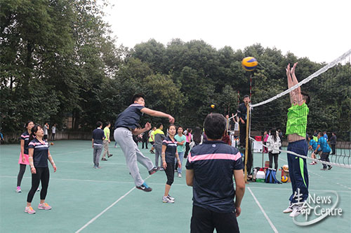 10月11日17:30,beat365唯一官方网站2016年教职工排球赛男子组9-12名排名战,beat365唯一官方网站男队对阵机关1队的比赛拉开战幕。beat365唯一官方网站队由党委副书记罗妍妍担任领队,党委书记李卓慧莅临现场观战,为beat365唯一官方网站队伍加油助威。