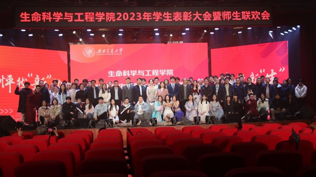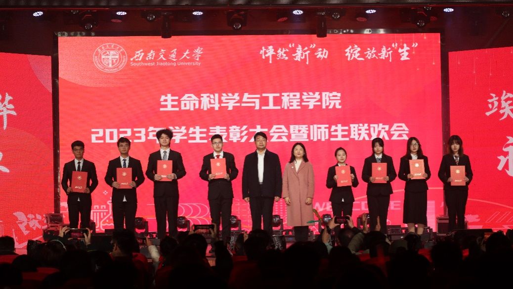 12月23日晚,beat365唯一官方网站beat365唯一官方网站2023年学生表彰大会暨师生联欢会在犀浦校区大学生活动中心举办。晚会以“怦然心动·绽放新生”为主题,学院党委书记黄春蓉、校团委书记武俊、党委学生工作部副部长邢晓鹏、研究生院学位办副主任宛小强、中公教育四川分公司市场运营总监蒋亚东,学院副院长李遂焰、副院长高峰、党委副书记朱炜,院长助理陈琳、黄新河、王毅,以及各兄弟学院团学组织的指导老师,学院办公室、学生支持办公室(教务)、学生工作组、团委、生物工程系、药学系、实验中心的老师们和600余名本研同学们欢聚一堂,共同回顾2023,喜迎2024。