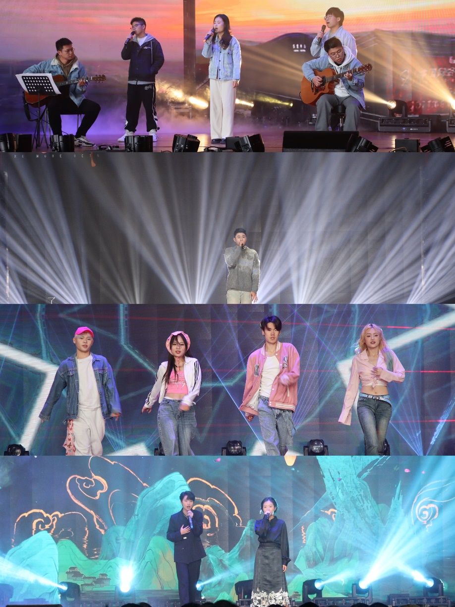 在第二篇章“心怀炽热·致青春”中,表演人员为我们献上了一场关于“青春”的视听盛宴。《筑梦童话》用跳动的旋律和动作诠释青春的炽热。歌曲《麒麟》将中国传统文化与现代说唱元素巧妙结合,以激昂的旋律、铿锵的节拍,为我们描绘了一个充满神秘与力量的麒麟世界。舞蹈《骁》作为第31届世界大学生运动会篮球决赛表演节目,用铿锵有力的舞姿会带领全场师生感知了“两脚踏翻尘世路,以天为盖地为庐 ”的少年江湖豪情。一曲《违背的青春》,指引我们在成长过程中寻找真正的自我,寻找丢失的青春。