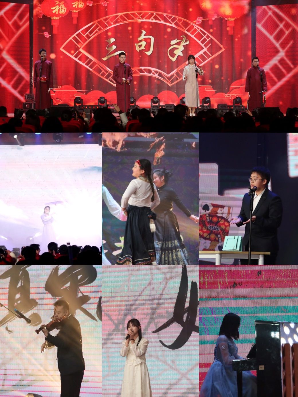 《成都》用婉转温情的民谣节奏带领大家开启晚会的第三篇章“星辰大海·绽风华”,也用歌声传递出交大学子对这座城市的热爱。由硕士研究生黄启发演唱的《千金散尽》为大家讲述了一个关于人生、金钱与情感的故事,传达了千金散尽、浮华褪去后的人生价值。舞蹈《无畏》中舞者们以他们的身体语言,告诉大家要勇敢地追求自己的梦想。燕子归巢,游子归家,《江南·燕归巢》通过古典舞与歌曲的结合,勾起异乡游子深深的思乡之情。