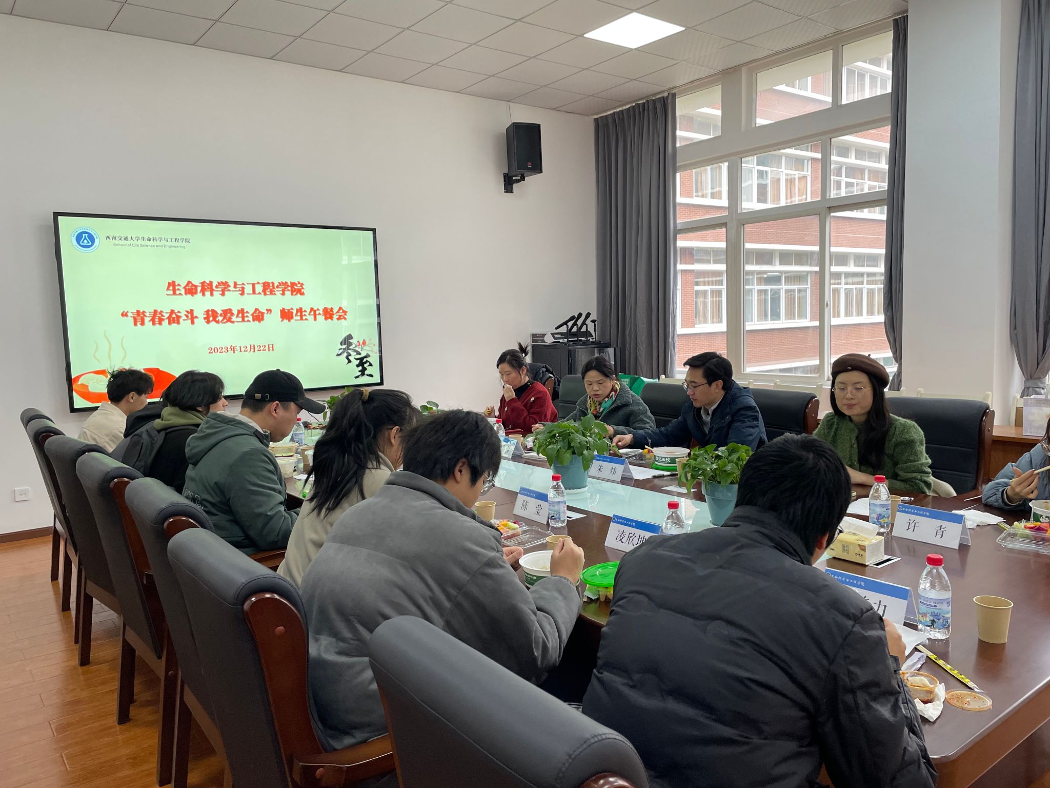 12月22日中午,beat365唯一官方网站以“青春奋斗·我爱生命”为主题,举办“暖冬”师生午餐会。学院党委书记黄春蓉、党委副书记朱炜、团委书记高鹏及学工组部分辅导员与学生代表参加午餐交流会。