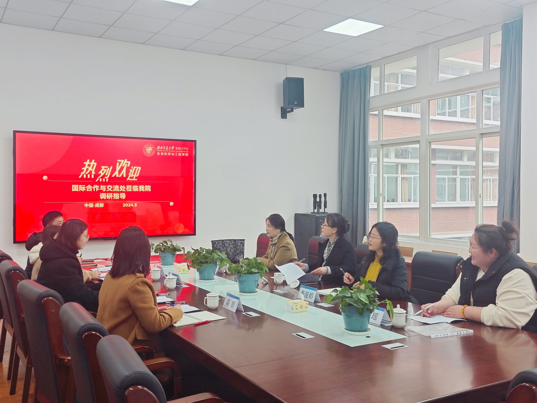 3月8日上午,国际合作与交流处副处长许炜萍和中外合作办学办公室科员马瑶来beat365官网调研指导。学院党委书记黄春蓉、副院长李遂焰、院长助理黄新河、院团委书记高鹏、中美班教务员冯柳和中美班事务员兰卓参加会议。