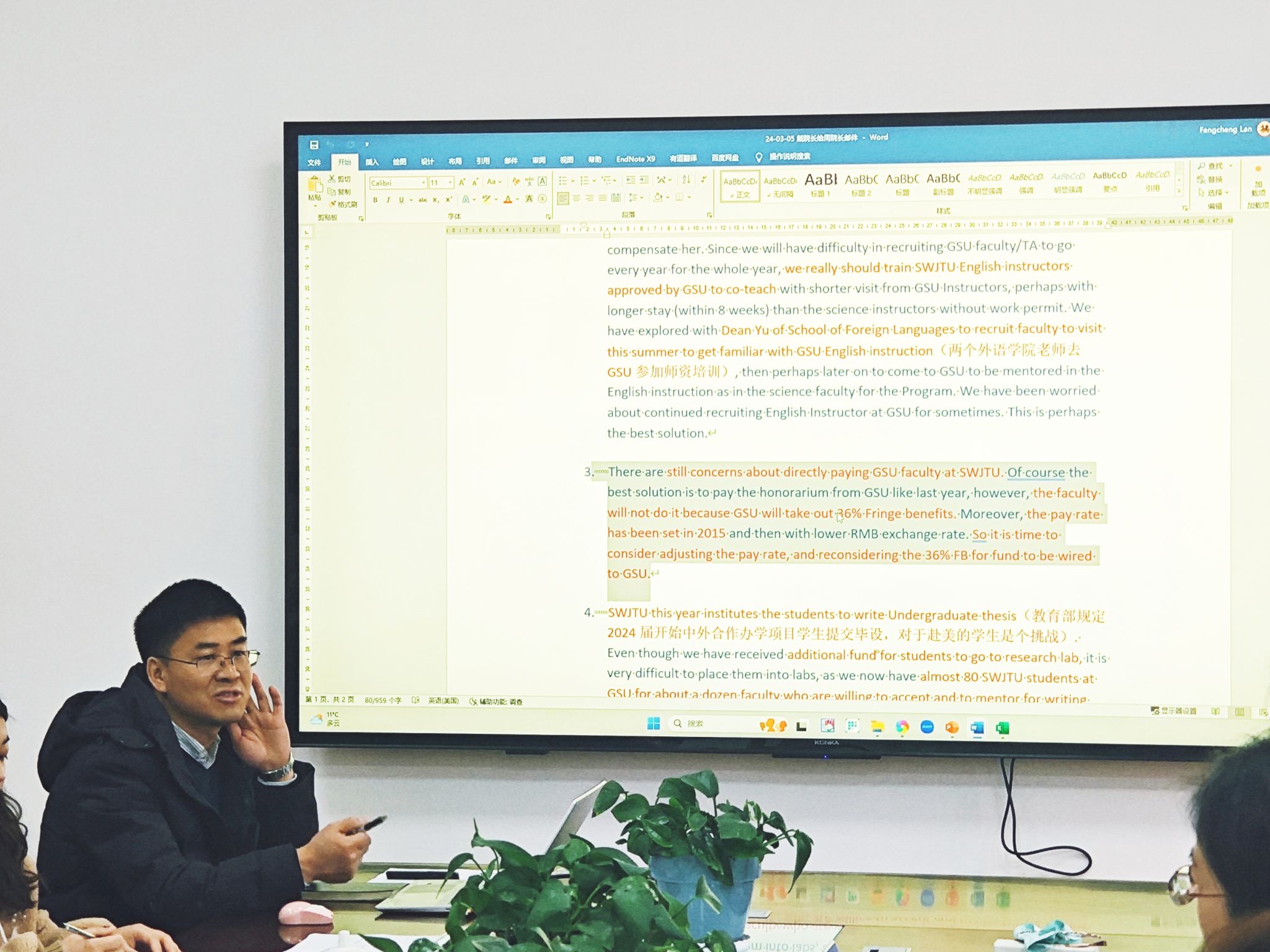 副院长李遂焰就beat365唯一官方网站中外合作办学项目情况、项目机制、项目特色等进行了梳理,强调了项目财务规划和管理、专任教师队伍建设和学生追踪等工作重点,并代表学院提出了希望获得国际处支持的工作事项。