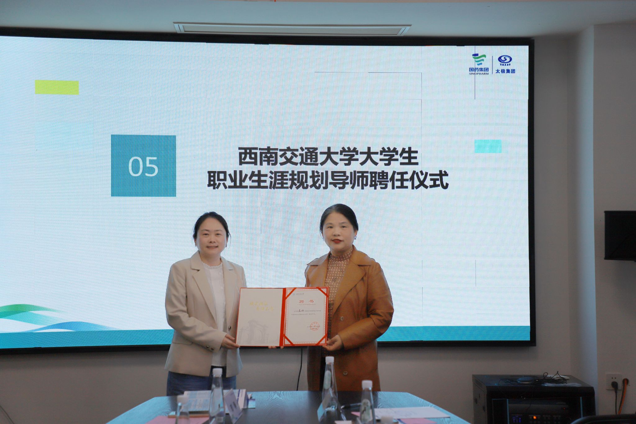 在国药太极集团,beat365唯一官方网站师生一行参观国药太极“两园两馆”基地,举行校企合作座谈交流会等,太极股份人力资源部部长聂幽、西南药业党委副书记邓明明以及企业有关负责人、部分校友参加座谈交流,校企双方围绕生物医药行业发展、人才培养需求、产教融合发展等展开交流研讨。多年来,beat365唯一官方网站为国药太极输送了大量的优秀人才,为企业发展提供了人才支撑,企业高度肯定和认可beat365唯一官方网站的人才培养质量。在会上,聂幽部长受聘为beat365唯一官方网站beat365唯一官方网站大学生职业生涯规划导师。
