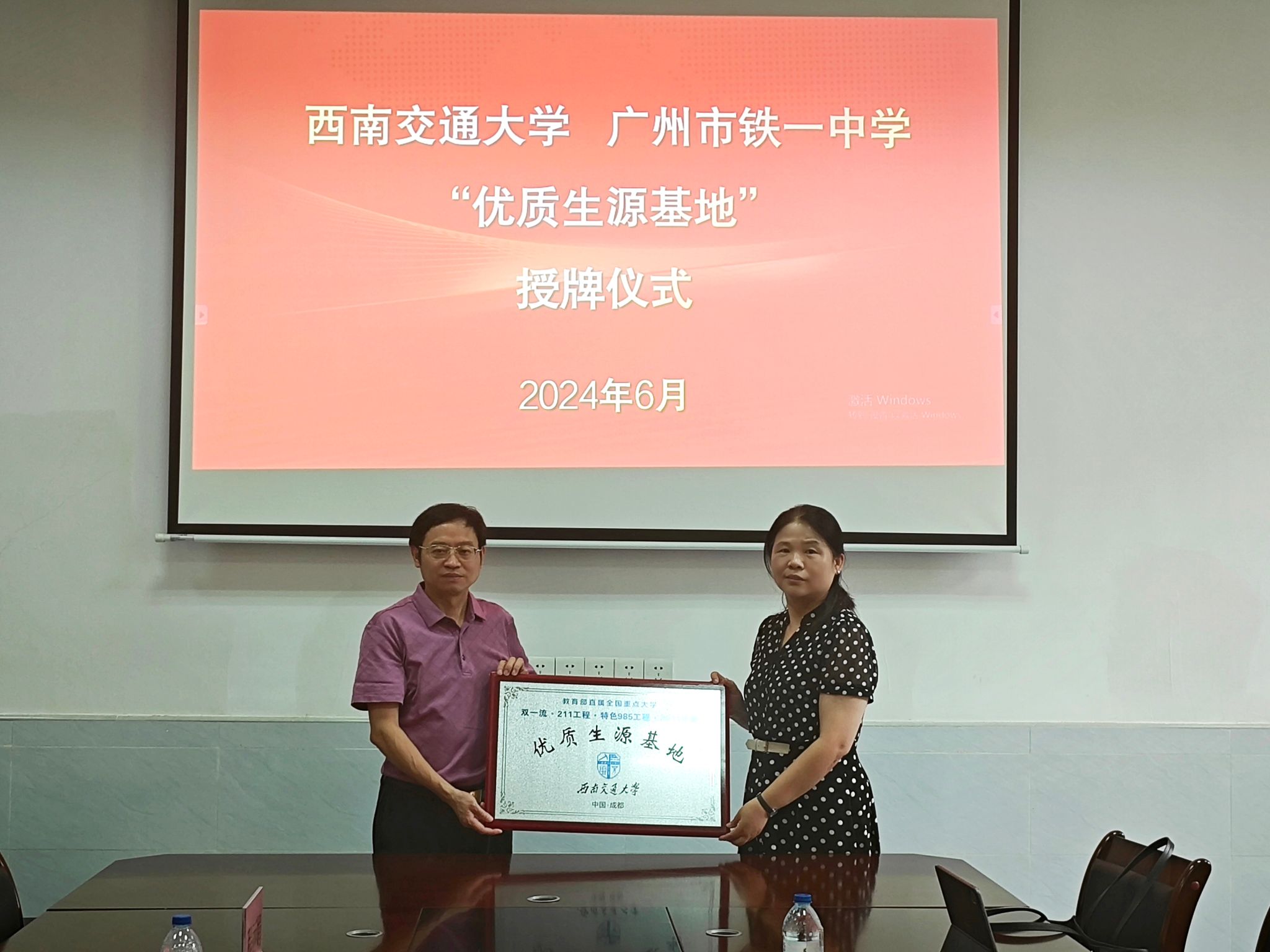 6月23日,beat365唯一官方网站党委书记黄春蓉带队,专业教师徐柳、辅导员许青一行3人前往广州市铁一中学越秀校区、番禺校区进行招生宣传。期间,与广州市铁一中学校长黄连生、办公室副主任程丽娟就学校概况、生源情况、高考情况等开展了座谈交流,并举行了beat365唯一官方网站-广州市铁一中学“优质生源基地”挂牌仪式。