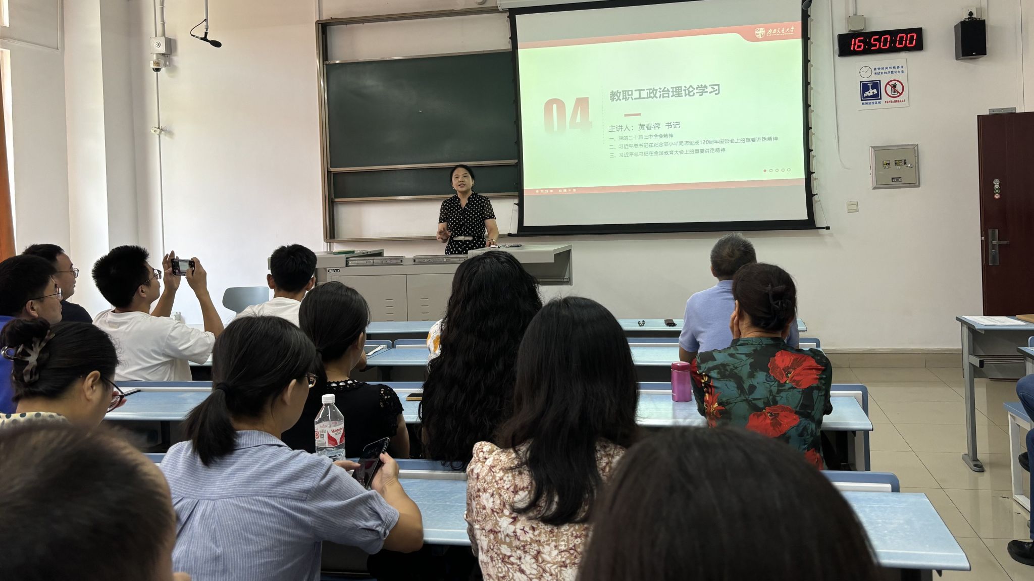 9月19日下午,beat365唯一官方网站在犀浦校区X2324召开全体教职工大会暨政治理论学习。学院领导班子及全体教职工参加会议,会议由学院党委书记黄春蓉主持。