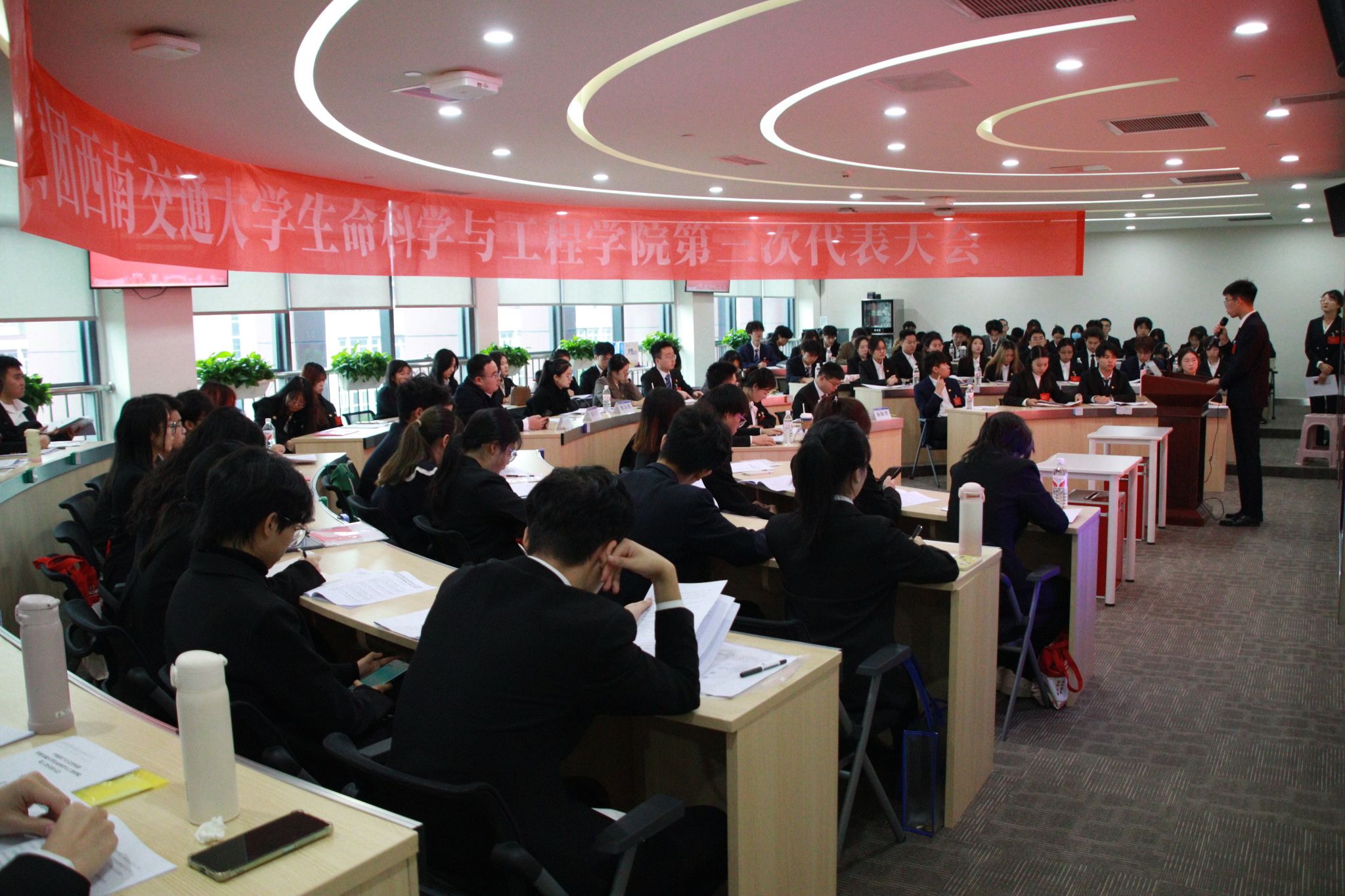 高举团旗跟党走,挺膺担当新征程。11月17日上午,共青团beat365唯一官方网站beat365唯一官方网站第三次代表大会在犀浦校区图书馆二号报告厅隆重召开。校团委副书记李娜、beat365唯一官方网站党委书记黄春蓉、各兄弟学院团委相关负责老师和beat365唯一官方网站师生代表出席了大会开幕会。大会由学院团委书记杨颖增主持。