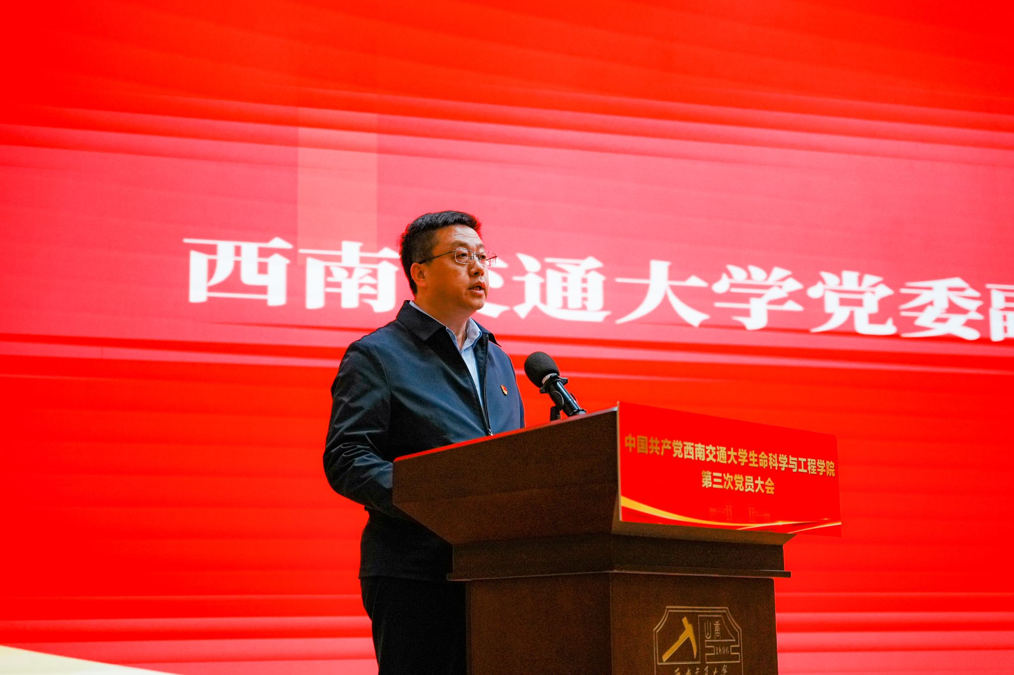 下午 14 时 30 分,beat365唯一官方网站第三次党员大会在庄严的国歌声中拉开序幕。夏玉峰代表学校党委向大会的召开表示热烈祝贺,向全体党员表示亲切问候。他充分肯定了beat365唯一官方网站第二次党员大会以来在学科建设、师资队伍培养、科研成果产出以及人才培养模式创新等方面所取得的工作成绩。他指出,这些成绩的取得离不开学院全体师生的共同努力和党员同志的先锋模范作用,是学院团结奋进、积极进取的有力彰显。同时,夏玉峰书记也对学院全体党员师生提出了几点希望:一是旗帜鲜明讲政治,深入学习领会习近平新时代中国特色社会主义思想的核心要义、精神实质、丰富内涵、实践要求,进一步提高政治站位,将讲政治的要求融入工作学习全过程各方面,在思想上、行动上始终同党中央保持高度一致;二是坚定理想信念,始终牢固树立共产主义远大理想和中国特色社会主义共同理想,教师党员争做立德树人、教书育人的表率,学生党员争做理想远大、担当奋斗的表率;三是坚持党建引领,进一步发挥党支部战斗堡垒作用和党员先锋模范作用,增强学院党委的政治功能和组织功能,统筹推进教育科技人才体制机制一体化改革,扎实推进“一融双高”,以高质量党建引领学院高质量发展;四是坚持全面从严治党,全面落实学院党委主体责任和学院纪委监督责任,严明政治纪律和政治规矩,深入推进党风廉政建设和反腐败斗争,为推动学院建设发展提供坚强政治纪律保障。希望新一届委员会在学校党委的坚强领导下,以习近平新时代中国特色社会主义思想和党的二十大精神为指引,全面贯彻落实党的教育方针和习近平总书记关于教育的重要论述,团结带领全院师生,依托学校交通特色,进一步明确学院发展方向,加强学科专业建设,大力弘扬优秀传统文化,凝心聚力,乘势而上,开启高水平beat365唯一官方网站建设新征程。