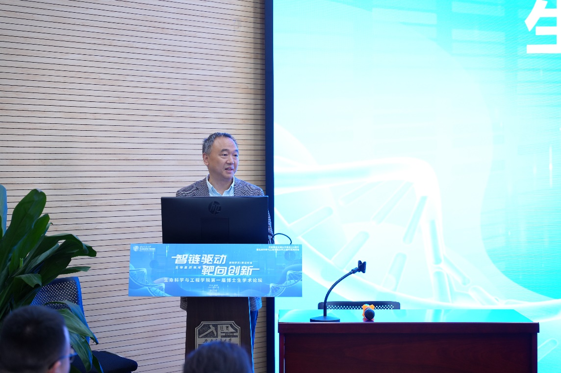 为进一步提升博士生学术创新能力,搭建高层次学术交流平台,学院组织开展“智链驱动・靶向创新”第一届博士生学术论坛,特邀三位杰出校友代表带来一场学术盛宴。成都市妇女儿童中心医院副研究员、2012届校友魏国清,四川大学华西医院组学技术与生物信息研究室助理研究员、2015届校友夏林、中国科学院成都文献情报中心发展咨询部特别研究助理、2016届校友马仕英,分别以《刺激响应型纳米药物的构建及其用于感染性疾病治疗研究》、《长读长测序技术在肿瘤基因组研究中的应用》、《生物制造产业创新发展情报研究》为题作报告,探讨生物医药领域的前沿进展和发展趋势。