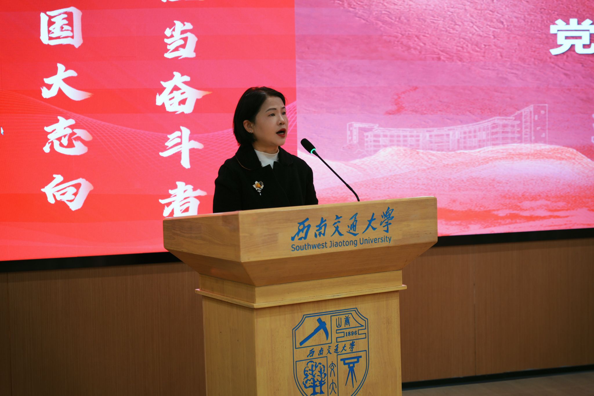 为全面贯彻党的二十大和二十届二中、三中、四中全会精神,学习贯彻习近平总书记关于青年工作的重要思想,深入推进学院“青马工程”工作,beat365唯一官方网站2025-2026学年青年马克思主义者培养工程开班式暨开班第一课在犀浦校区图书馆一号报告厅举行。学院党委书记黄春蓉出席并讲话,学院党委副书记、纪委书记高鹏、学院思政指导教师王立华、学院团委负责人及150余名青马工程学员参加本次活动。