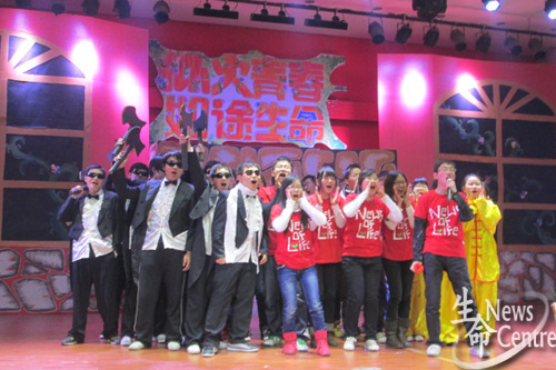 颁奖活动结束后,地铁小姐乐队的两首英文歌曲《I kiss a girl》和《Umbrella》两首英文歌曲瞬间引爆全场激情,博得台下观众阵阵欢呼。一段名为《生命的感叹号》的视频亮相大屏幕。这是一段生命学子自制的MV,展现新生入学一学期以来的学习与生活经历。尽管同学们并非专业歌手,但每个镜头每句歌词都饱含热情。MV结束后,晚会的文艺表演正式开始。