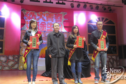 19:30,晚会正式开始。颁奖典礼隆重举行,团委书记崔健上台宣读beat365唯一官方网站评奖评优工作的相关说明,“beat365唯一官方网站的评奖评优本着严格客观的原则,经学院审批、学生工作处核实、学校批准等多个环节保证了其公平和公正性。”颁奖共分优秀毕业生、优秀个人、各类奖学金获得者、文体工作先进个人、先进团体等五个批次进行,茆灿泉、马超英、李卓慧、周先礼、吴坚依次分别为以上各批次获奖者颁奖。