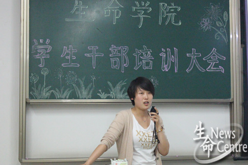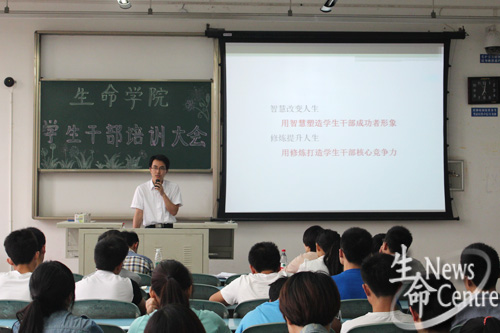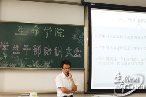 在大会中,崔健老师对各位学生干部平时做出的努力给予了肯定,希望各干部继续努力,但也要搞好学生的本职—学习。他从“慧思”和“慧行”讲解人生,无论做人做事,都应有乐观积极的心态。他指出每个人都应该有自己的规划:“我往何方走?我与谁为伍?我将成为什么?”,同时也对人际交往基础技能进行了详细的要求及指导。从平时学校社团协会活动,到待人的基本礼仪,再到办公室礼仪、社交礼仪、人际交往与口才一一进行了详细独到的讲解。