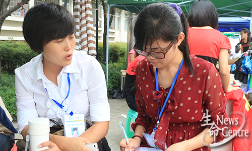 谈到今年迎新与去年的不同,beat365唯一官方网站辅导员孔琳说,今年的志愿者人数较以往多了很多,很大程度上是因为2012级生命学生都住在南区,安排工作比较方便。同时,2013级新生相对比较独立,部分新生都是自己来校报到。学生的自立,老师自然欣喜,孔琳老师对2013级生命学子今后的表现充满期待。