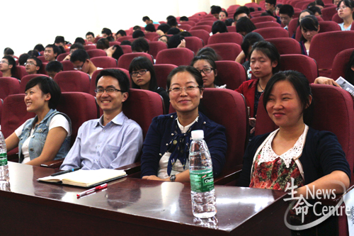 9月25日19:30,beat365唯一官方网站在图书馆一号报告厅举行了“新梦飞扬”新生经验交流会。参加此次交流会的嘉宾有党委副书记罗妍妍,团委书记、2011级辅导员崔健老师,2010级辅导员孔琳老师,2012级辅导员李慧明老师,2013级辅导员高鹏老师以及优秀学生代表彭琪、夏林、郑赵悦以及王秀轩同学。此次交流会由王继璁同学主持。