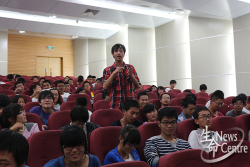在各位学生代表分享完学习及生活经验后,交流会进入了提问环节。同学们都踊跃发言,提出自己的问题,学生代表及各位辅导员逐一为大家详细解答。
